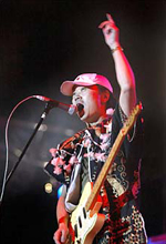 On Aug.6, 2005, the celebration on the 3rd Anniversary of Cui Jian-launched Sing by Yourself Movement got underway in Fenghuayuan Auto-cinema in Beijing. In the hails of various media and audience, Cui Jian announced that it symbolized a staggered victory of the movement that the newly modified Managing Ornament of Performance Business enacts withdrawal of licence as punishment on deceptive singing in commercial performances. After that, Cui Jian sang some of his songs, including “Mr Red”, “Fly Away”, “Egg below the Red Flag” and “Beijing Story”. There were many other famous bands and singers who gave excellent performances that night, including Gao Qi, Jiang Xin, Shuimunianhua & Manyan, Xie Tianxiao & Cold-Blooded Animal, Yan, AK47, Lonely Summer Days, Hang On the Box, Ensconce and Verse.(Photo by liuge) On Jul.31, 2005, Cui Jian and his band attended the “Gegentala Plain Carnival” hosted on Gegentala Plain in Siziwang Flag in Inner-Mongolia. There were another over twenty first-rank bands in the field of China’s Rock that took part in the fete, which included Dou Wei & Unnecessarily, Second-Handed Rose, Muma, Brain Feather, Painful Faith, Voice & Toy.(Photo by Wangzebin) On Jul.29, 2005, Cui Jian and his band attended the great performance of “Carnivalesque Party of 1 VS 120,000” hosted in Beihai, Guangxi. On Jul.16, 2005, Cui Jian and his band attended the great show of “Fashion Storm — Verse of Global Exhibition” hosted in Kunming, Yunnan. In the passionate hails of the fans in Kunming, Cuijian extemporized “Mr Red”, “Let Me Be Crazy On The Snow”, “Fly Away”, “Soul of Great Wall”, “Nanniwan” and “Over That Day”.(Photo by Wangzebin) On Jul.1, 2005, Cui Jian and his band attended the “Great Concert on the 60th Anniversary of the Victory of World Anti-Fascist War”. Other bands attending the concert were Zheng Jun and his band, Tang Dynasty, Huang Guanzhong and Sweat, Second-Handed Rose, Gao Qi and Overload, etc. As the last one to perform, Cui Jian’s band enjoyed the overwhelming applaud of the audience, which exalted the atmosphere of the concert to the zenith.