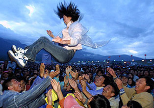 fans couldn’t help running onto the stage on the purpose of On the night of July 15th,2006,Cui Jian and the band gave an unplugged live show in Beijing Starshine, where over 1000 fans vividly experienced the powerful music of Cui Jian and the band. The whole 2-hour concert was wonderful: from the first song <Mr.Red>, the fans had begun to rock with Cui Jian. The atmosphere became hottest when it came to <Fake Monk> and <Wild on the snow>.All the fans sang with Cui Jian,waving their hands and swaying their bodies. Finally thanks to the passion of the fans, there were altogether four encores. June 18th, 2006 Cui Jian and his band attended "If The Twenty Years Came Again" hosted in Shenyang. Address: Trainhead Stadium, Shenyang (photo:Liloli)